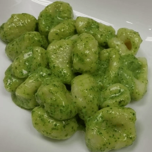 Homemade ravioli filled with ricotta cheese and spinach served with walnut sauce made with parmigiano reggiano, roman pecorino cheese, pine-nuts, walnuts and milk
