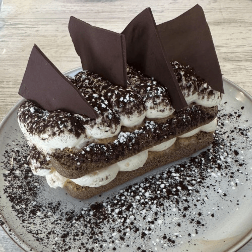 Creamy layers of mascarpone cheese and coffee-soaked ladyfingers, dusted with cocoa powder