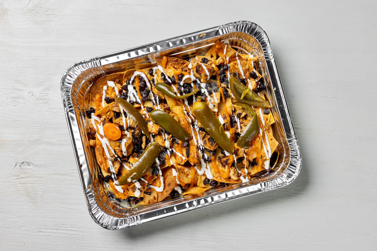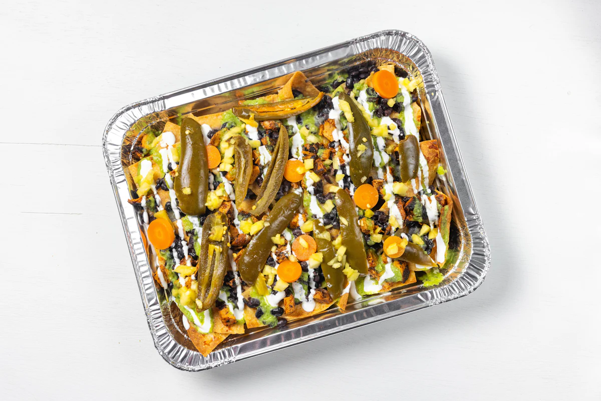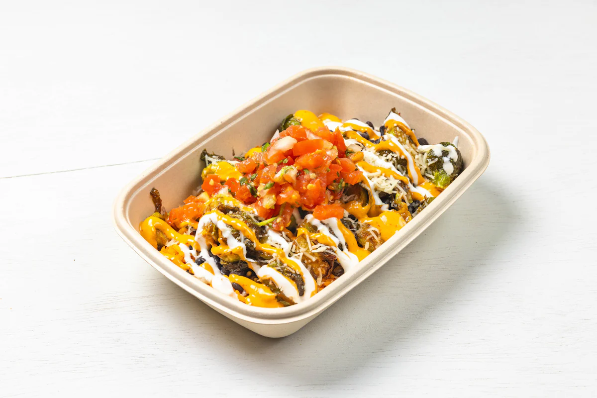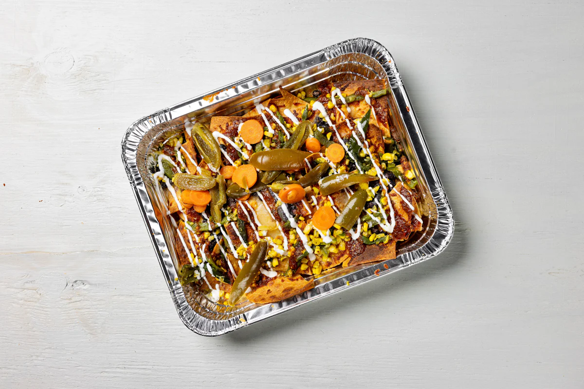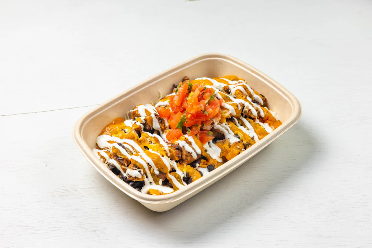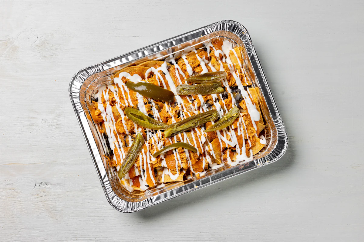 MADE WITH VEGAN BEYOND MEAT, SEASONING, SPICES. (VEGETARIAN) *FRESH HAND CUT CORN TORTILLA CHIPS TOPPED WITH YOUR CHOICE OF PROTEIN, SALSA, BLACK BEANS, CHEESE, CREMA & ESCABECHE PEPPERS (SMALL SIZE) **ALLERGY ALERT: IF YOU OR SOMEONE IN YOUR PARTY HAS A FOOD ALLERGY, PLEASE PLACE ORDER OVER THE PHONE. **CROSS-CONTAMINATION ALERT: ALTHOUGH WE TRY OUR BEST, UNFORTUNATELY CROSS-CONTACT WITH OTHER INGREDIENTS MAY OCCUR. REGRETTABLY, WE CANNOT GUARANTEE THE COMPLETE ABSENSE OF ALLERGENS.