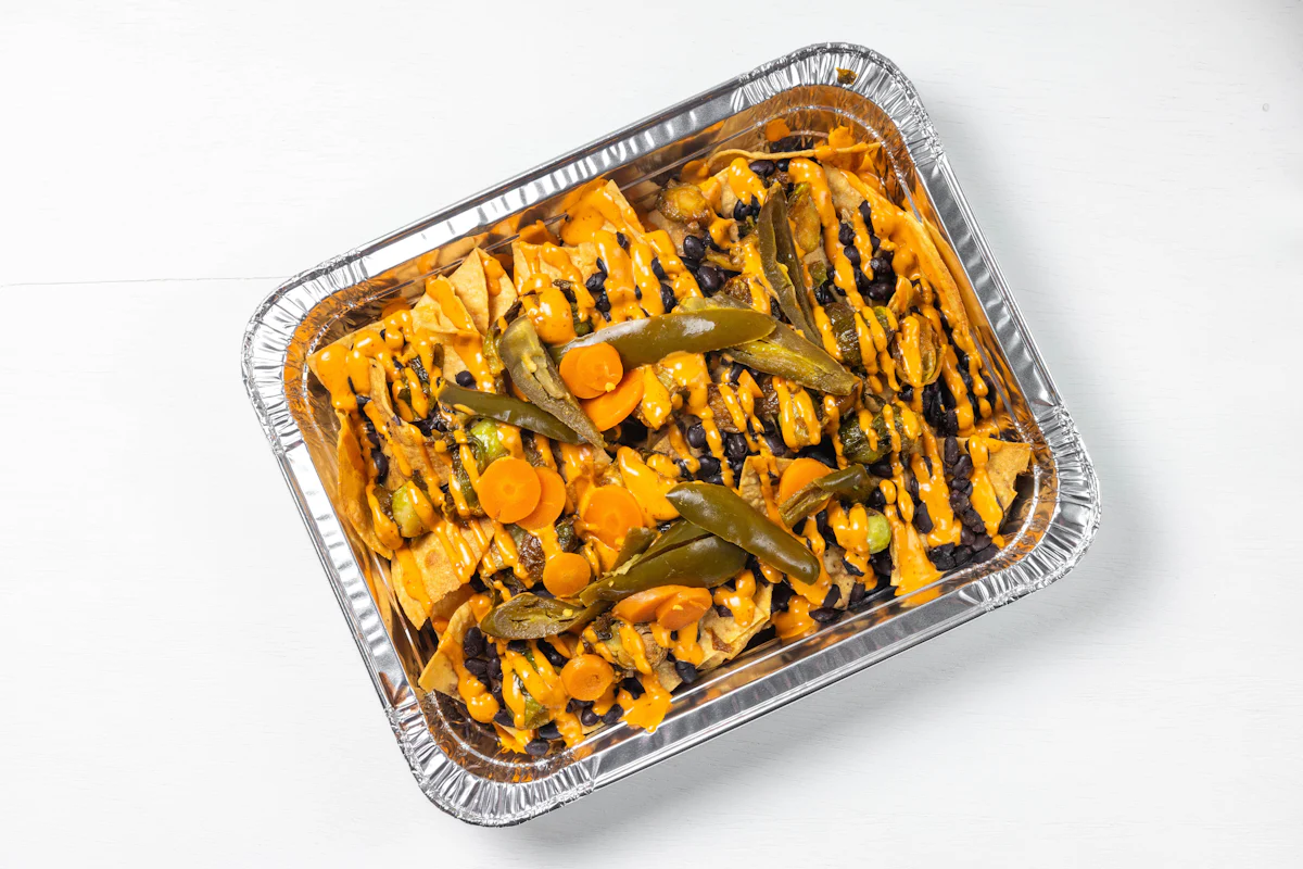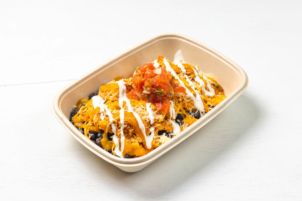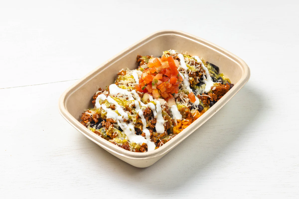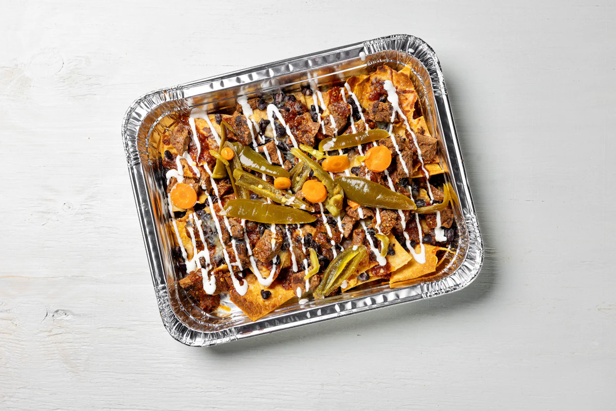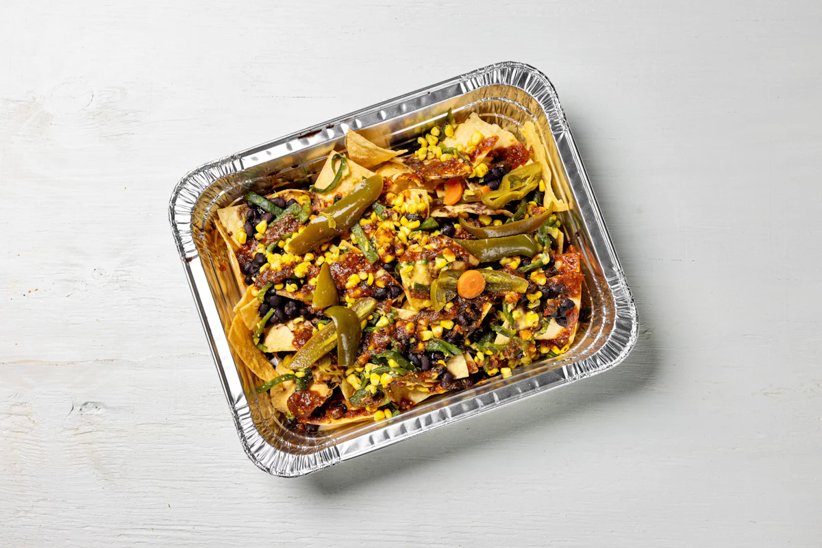 MADE WITH VEGAN BEYOND MEAT, SEASONING, SPICES. (VEGETARIAN) *FRESH HAND CUT CORN TORTILLA CHIPS TOPPED WITH YOUR CHOICE OF PROTEIN, SALSA, BLACK BEANS, CHEESE, CREMA & ESCABECHE PEPPERS (SMALL SIZE) **ALLERGY ALERT: IF YOU OR SOMEONE IN YOUR PARTY HAS A FOOD ALLERGY, PLEASE PLACE ORDER OVER THE PHONE. **CROSS-CONTAMINATION ALERT: ALTHOUGH WE TRY OUR BEST, UNFORTUNATELY CROSS-CONTACT WITH OTHER INGREDIENTS MAY OCCUR. REGRETTABLY, WE CANNOT GUARANTEE THE COMPLETE ABSENSE OF ALLERGENS.