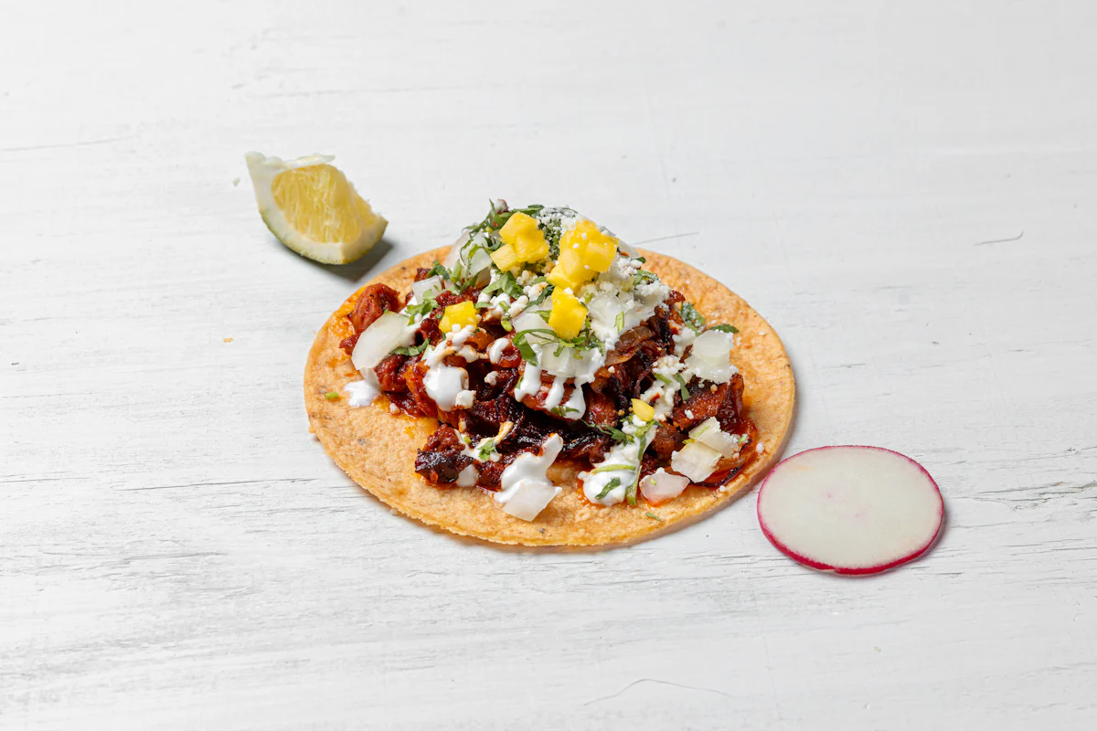 PORK MARINATED IN SPICES & PINEAPPLES *ALL TACOS SERVED WITH ONIONS, CILANTRO, SALSA, COTIJA CHEESE, CREMA AND CHOICE OF PROTEIN ON A CORN TORTILLA. GARNISHED WITH SLICES OF RADISH & LIME WEDGES. **ALLERGY ALERT: IF YOU OR SOMEONE IN YOUR PARTY HAS A FOOD ALLERGY, PLEASE PLACE ORDER OVER THE PHONE. **CROSS-CONTAMINATION ALERT: ALTHOUGH WE TRY OUR BEST, UNFORTUNATELY CROSS-CONTACT WITH OTHER INGREDIENTS MAY OCCUR. REGRETTABLY, WE CANNOT GUARANTEE THE COMPLETE ABSENSE OF ALLERGENS.