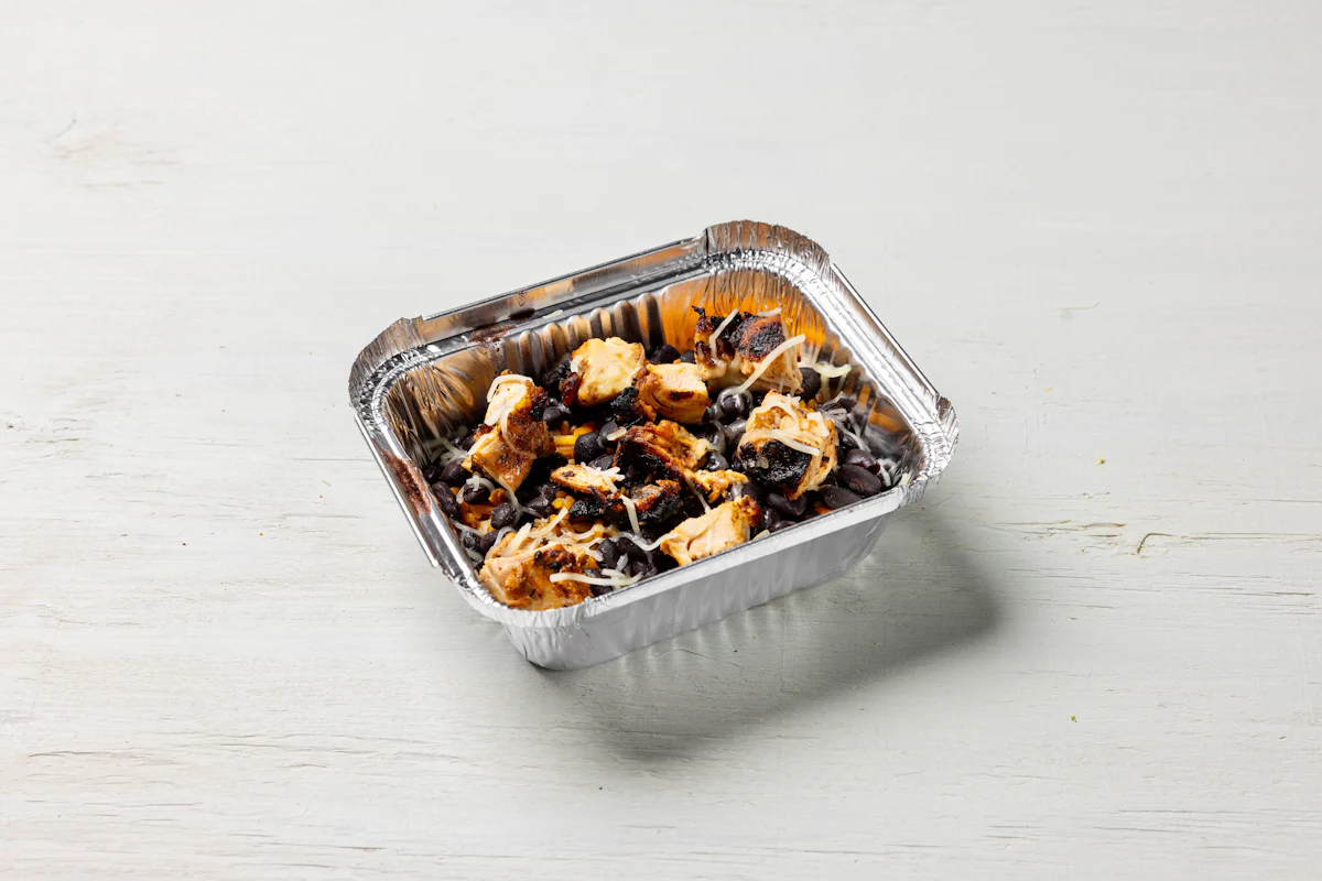 SPICED MARINATED GRILLED CHICKEN *BOX SERVED WITH SEASONED RICE, BLACK BEANS, JACK CHEESE & CHOICE OF PROTEIN. **ALLERGY ALERT: IF YOU OR SOMEONE IN YOUR PARTY HAS A FOOD ALLERGY, PLEASE PLACE ORDER OVER THE PHONE. **CROSS-CONTAMINATION ALERT: ALTHOUGH WE TRY OUR BEST, UNFORTUNATELY CROSS-CONTACT WITH OTHER INGREDIENTS MAY OCCUR. REGRETTABLY, WE CANNOT GUARANTEE THE COMPLETE ABSENSE OF ALLERGENS.