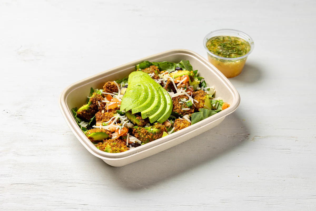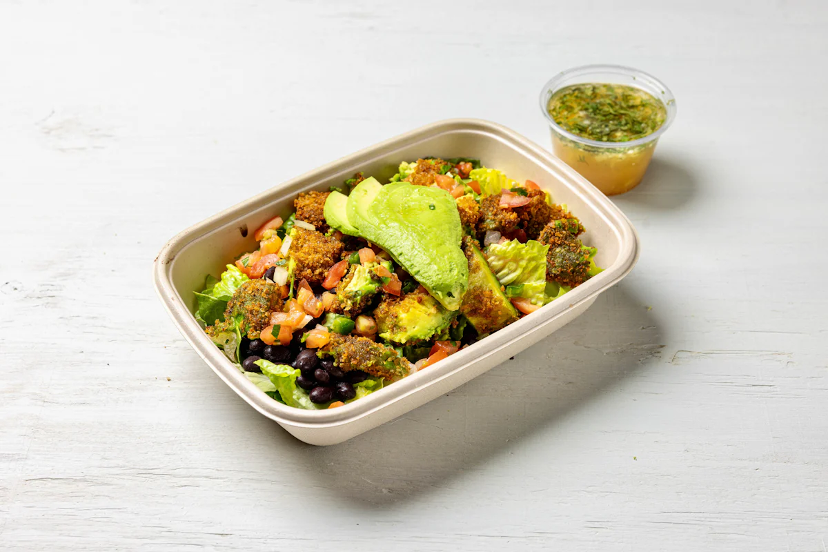LIGHTLY BREADED SLICED AVOCADO PAIRED WITH VEGAN CHIPOTLE AIOLI *ALL SALAD SERVED WITH CHOICE OF PROTEIN, SLICED AVOCADO, BLACK BEANS, PICO DE GALLO SERVED ON A BED OF ROMAINE LETTUCE. SERVED WITH TACORIA'S HOUSE-MADE PINEAPPLE LIME DRESSING. **ALLERGY ALERT: IF YOU OR SOMEONE IN YOUR PARTY HAS A FOOD ALLERGY, PLEASE PLACE ORDER OVER THE PHONE. **CROSS-CONTAMINATION ALERT: ALTHOUGH WE TRY OUR BEST, UNFORTUNATELY CROSS-CONTACT WITH OTHER INGREDIENTS MAY OCCUR. REGRETTABLY, WE CANNOT GUA