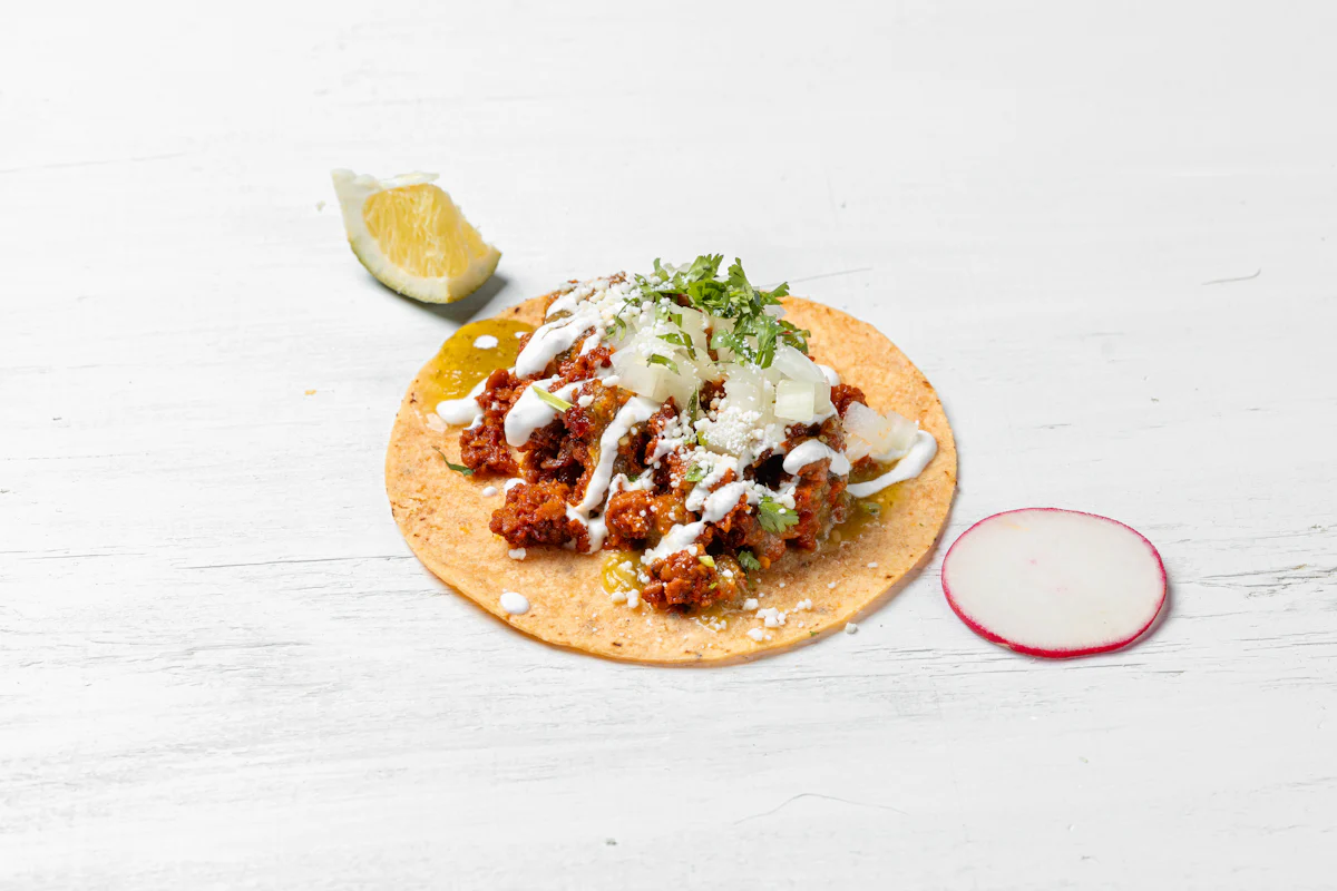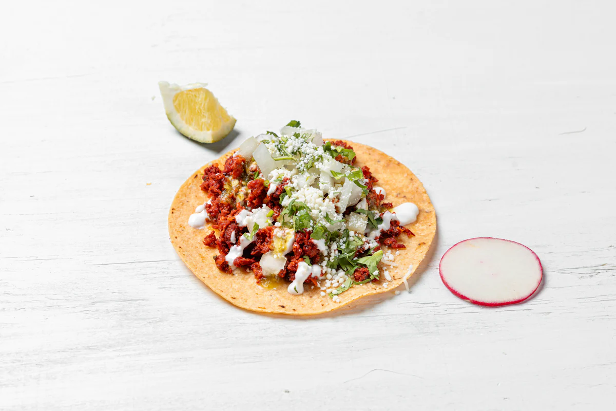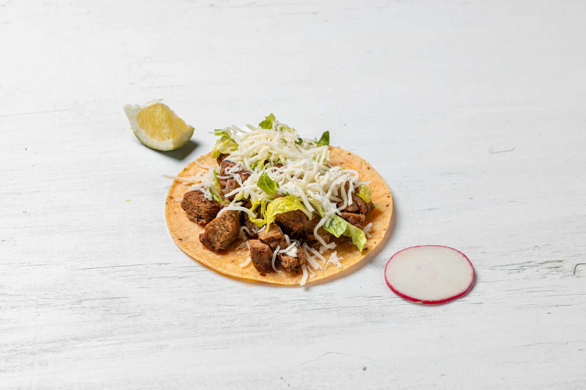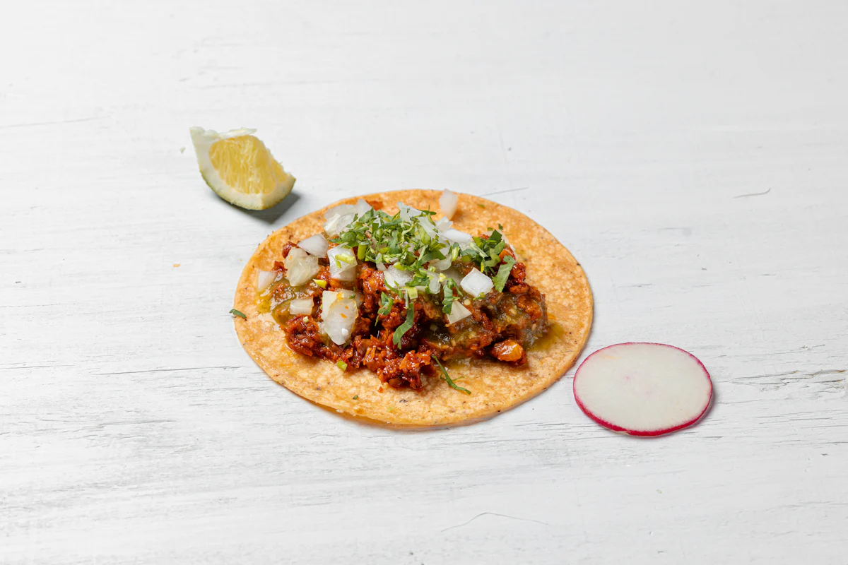 MADE WITH VEGAN BEYOND 'MEAT', SEASONING, SPICES. *ALL TACOS SERVED WITH ONIONS, CILANTRO, SALSA, AND CHOICE OF PROTEIN ON A CORN TOTILLAS. GARNISHED WITH SLICES OF RADISH & LIME WEDGES. **ALLERGY ALERT: IF YOU OR SOMEONE IN YOUR PARTY HAS A FOOD ALLERGY, PLEASE PLACE ORDER OVER THE PHONE. **CROSS-CONTAMINATION ALERT: ALTHOUGH WE TRY OUR BEST, UNFORTUNATELY CROSS-CONTACT WITH OTHER INGREDIENTS MAY OCCUR. REGRETTABLY, WE CANNOT GUARANTEE THE COMPLETE ABSENSE OF ALLERGENS.