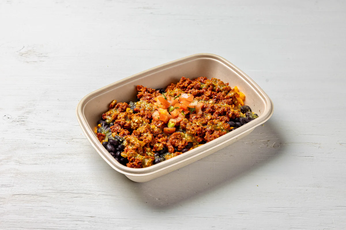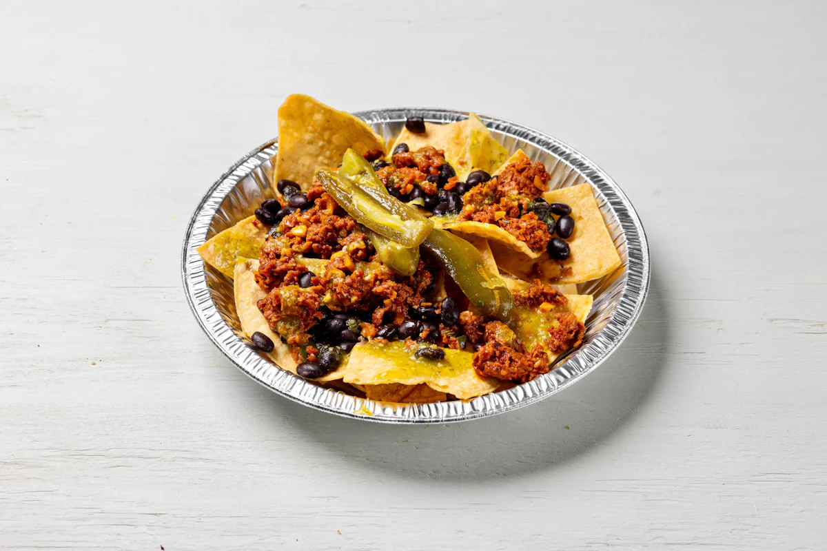 MADE WITH VEGAN BEYOND 'MEAT', SEASONING, SPICES PAIRED WITH VERDE SALSA *FRESH HAND CUT CORN TORTILLA CHIPS TOPPED WITH YOUR CHOICE OF PROTEIN, SALSA, BLACK BEANS, & ESCABECHE PEPPERS (SMALL SIZE) **ALLERGY ALERT: IF YOU OR SOMEONE IN YOUR PARTY HAS A FOOD ALLERGY, PLEASE PLACE ORDER OVER THE PHONE. **CROSS-CONTAMINATION ALERT: ALTHOUGH WE TRY OUR BEST, UNFORTUNATELY CROSS-CONTACT WITH OTHER INGREDIENTS MAY OCCUR. REGRETTABLY, WE CANNOT GUARANTEE THE COMPLETE ABSENSE OF ALLERGENS.
