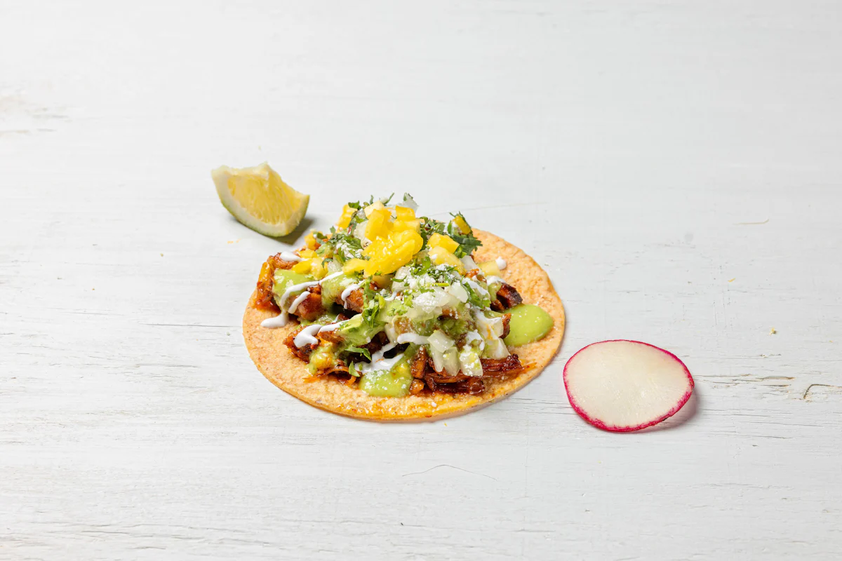 Colorful Mexican street food spot with tacos, burritos, bowls & a full vegan menu