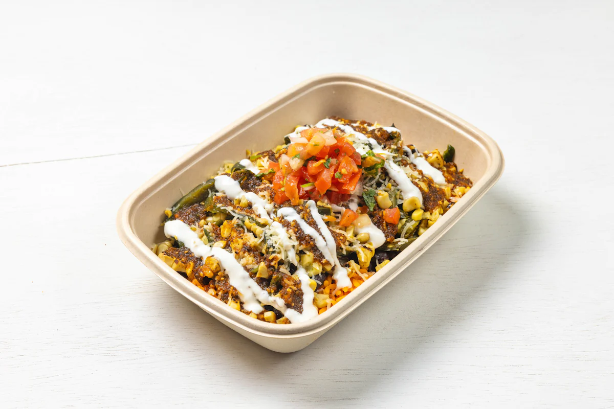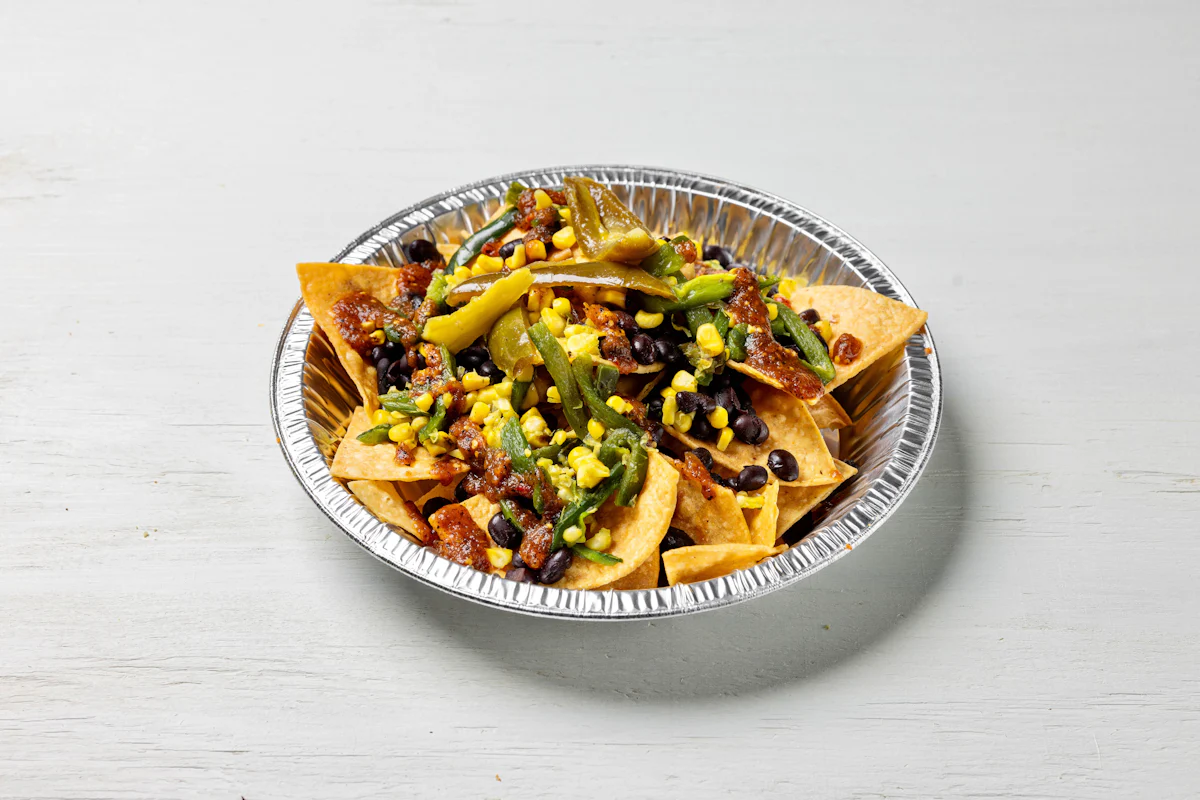 ROASTED CORN & POBLANO PEPPERS WITH SMOKY ROJA SALSA (VEGETARIAN) *FRESH HAND CUT CORN TORTILLA CHIPS TOPPED WITH YOUR CHOICE OF PROTEIN, SALSA, BLACK BEANS, CHEESE, CREMA & ESCABECHE PEPPERS (SMALL SIZE) **ALLERGY ALERT: IF YOU OR SOMEONE IN YOUR PARTY HAS A FOOD ALLERGY, PLEASE PLACE ORDER OVER THE PHONE. **CROSS-CONTAMINATION ALERT: ALTHOUGH WE TRY OUR BEST, UNFORTUNATELY CROSS-CONTACT WITH OTHER INGREDIENTS MAY OCCUR. REGRETTABLY, WE CANNOT GUARANTEE THE COMPLETE ABSENSE OF ALLERGE