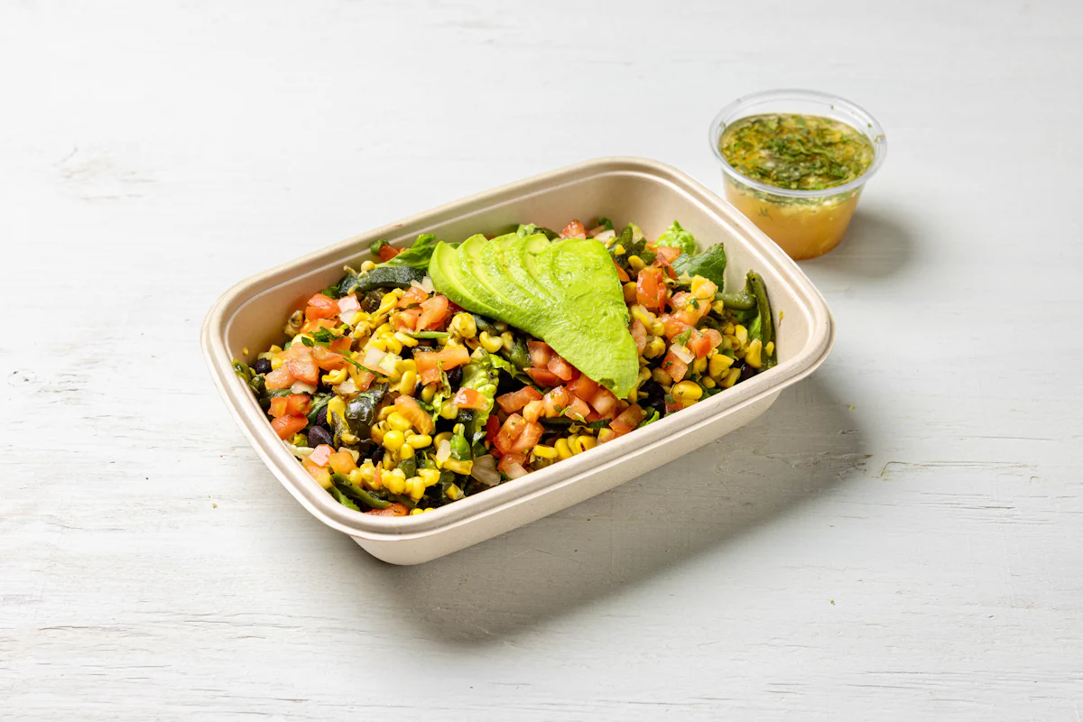 Side of our roasted corn & poblano peppers protein.
