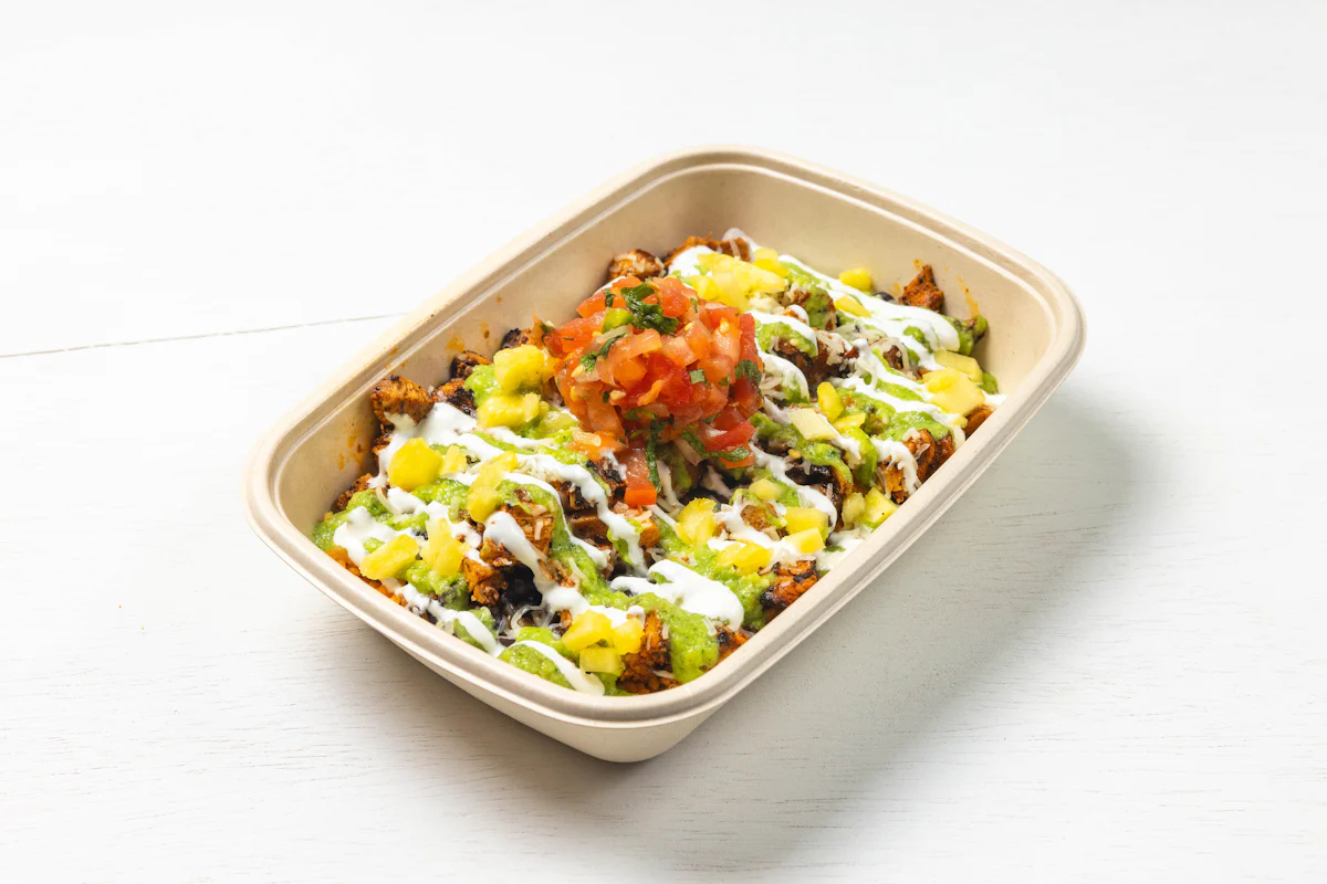 CHICKENMARINATED IN HOUSE BLEND OF SPICES & PINEAPPLE, PAIRED WITH AVOCADO VERDE SALSA. *FRESH HAND CUT CORN TORTILLA CHIPS TOPPED WITH YOUR CHOICE OF PROTEIN, SALSA, BLACK BEANS, CHEESE, CREMA & ESCABECHE PEPPERS (SMALL SIZE) **ALLERGY ALERT: IF YOU OR SOMEONE IN YOUR PARTY HAS A FOOD ALLERGY, PLEASE PLACE ORDER OVER THE PHONE. **CROSS-CONTAMINATION ALERT: ALTHOUGH WE TRY OUR BEST, UNFORTUNATELY CROSS-CONTACT WITH OTHER INGREDIENTS MAY OCCUR. REGRETTABLY, WE CANNOT GUARANTEE THE COMPL