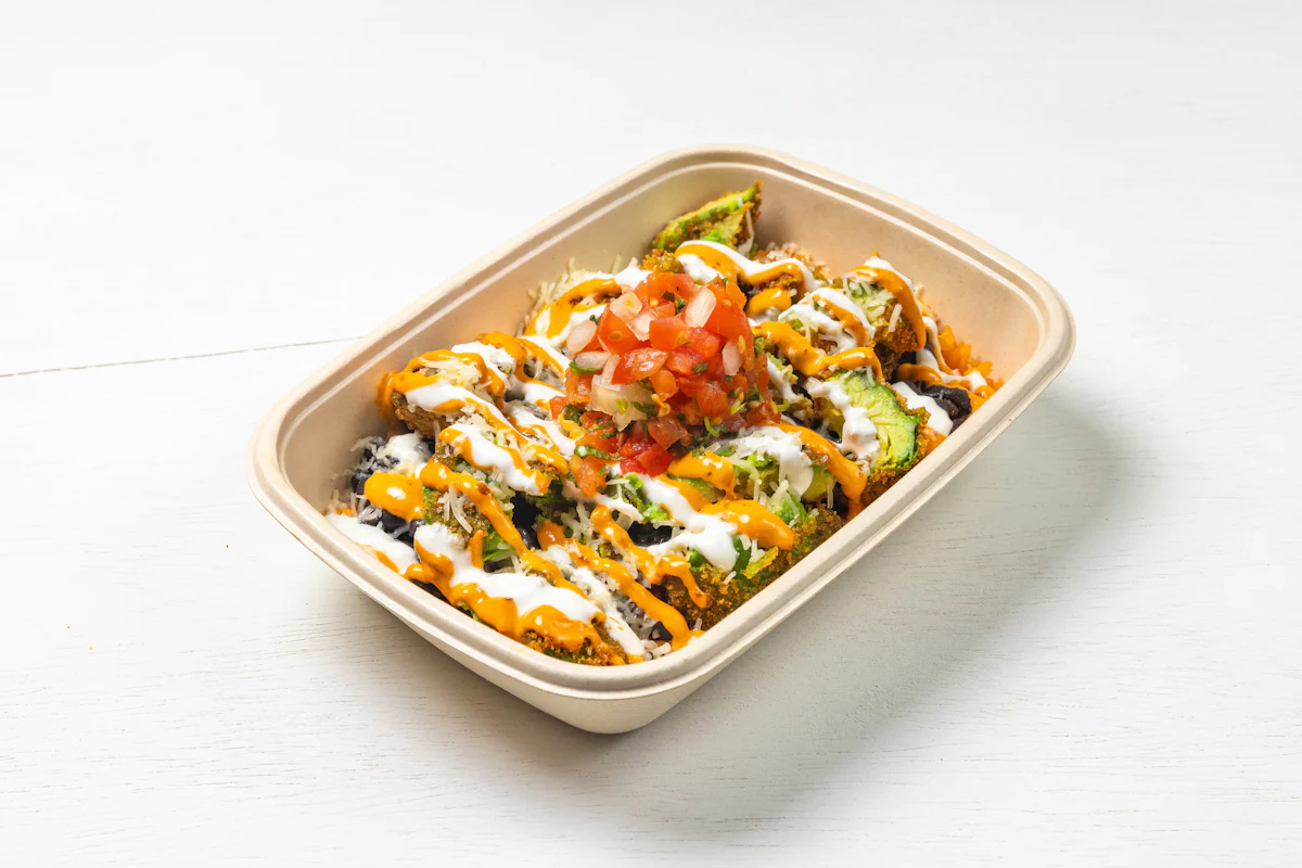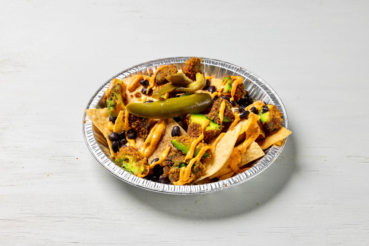 LIGHTLY BREADED SLICED AVOCADO PAIRED WITH VEGAN CHIPOTLE AIOLI *FRESH HAND CUT CORN TORTILLA CHIPS TOPPED WITH YOUR CHOICE OF PROTEIN, SALSA, BLACK BEANS, & ESCABECHE PEPPERS (RECOMMENDED FOR 2+ PEOPLE) **ALLERGY ALERT: IF YOU OR SOMEONE IN YOUR PARTY HAS A FOOD ALLERGY, PLEASE PLACE ORDER OVER THE PHONE. **CROSS-CONTAMINATION ALERT: ALTHOUGH WE TRY OUR BEST, UNFORTUNATELY CROSS-CONTACT WITH OTHER INGREDIENTS MAY OCCUR. REGRETTABLY, WE CANNOT GUARANTEE THE COMPLETE ABSENSE OF ALLERGEN