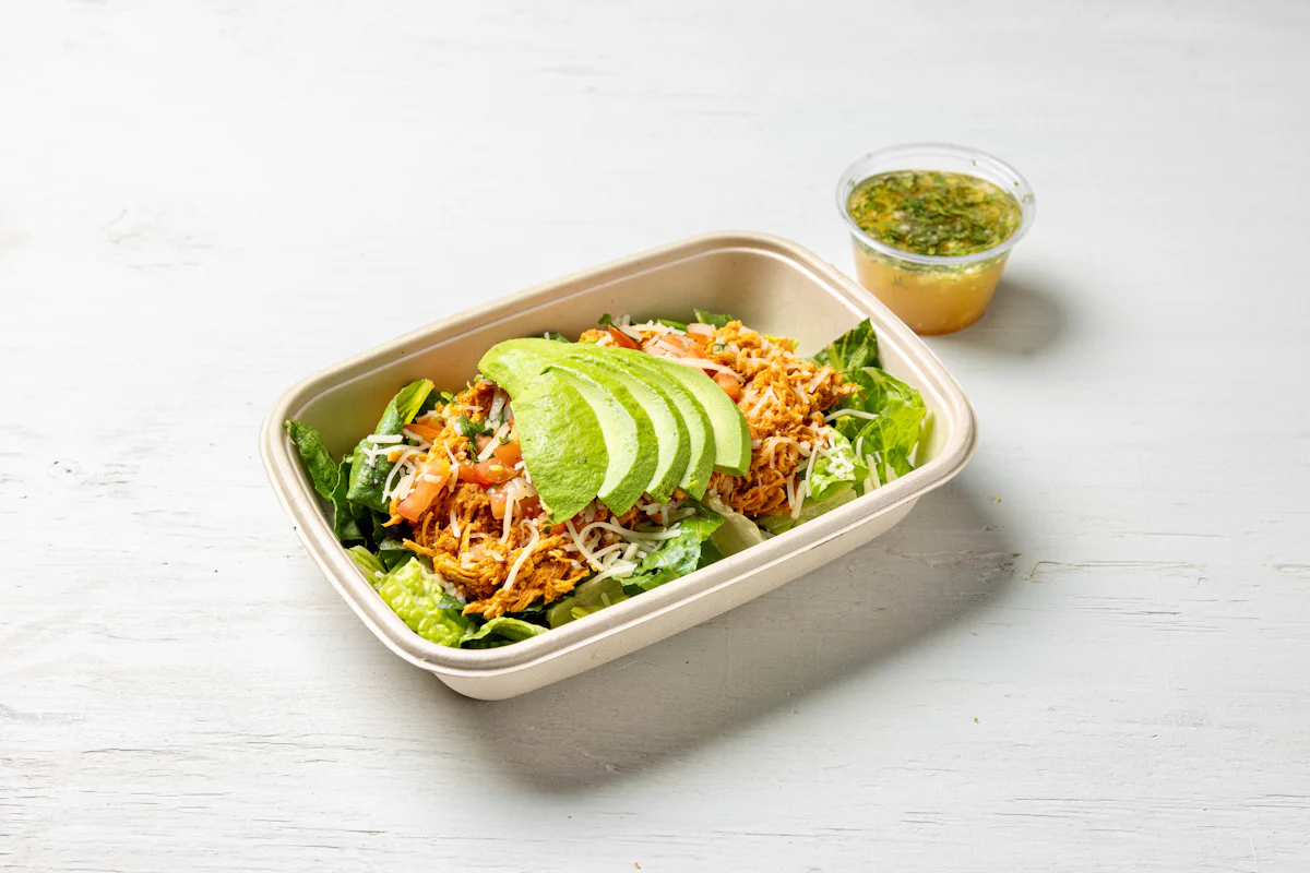 SPICY PULLED CHICKEN *ALL SALADS SERVED WITH CHOICE OF PROTEIN, SLICED AVOCADO, BLACK BEANS, PICO DE GALLO & CHEESE SERVED ON A BED OF ROMAINE LETTUCE. SERVED WITH TACORIA'S HOUSE-MADE PINEAPPLE LIME DRESSING. **ALLERGY ALERT: IF YOU OR SOMEONE IN YOUR PARTY HAS A FOOD ALLERGY, PLEASE PLACE ORDER OVER THE PHONE. **CROSS-CONTAMINATION ALERT: ALTHOUGH WE TRY OUR BEST, UNFORTUNATELY CROSS-CONTACT WITH OTHER INGREDIENTS MAY OCCUR. REGRETTABLY, WE CANNOT GUARANTEE THE COMPLETE ABSENSE