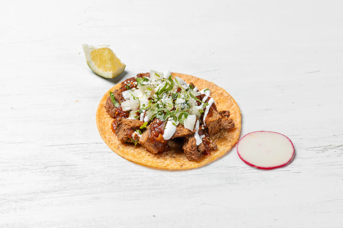 SPICE MARINATED GRILLED STEAK PAIRED WITH SMOKY ROJA SALSA *ALL TACOS SERVED WITH ONIONS, CILANTRO, SALSA, COTIJA CHEESE, CREMA AND CHOICE OF PROTEIN ON A CORN TORTILLA. GARNISHED WITH SLICES OF RADISH & LIME WEDGES. **ALLERGY ALERT: IF YOU OR SOMEONE IN YOUR PARTY HAS A FOOD ALLERGY, PLEASE PLACE ORDER OVER THE PHONE. **CROSS-CONTAMINATION ALERT: ALTHOUGH WE TRY OUR BEST, UNFORTUNATELY CROSS-CONTACT WITH OTHER INGREDIENTS MAY OCCUR. REGRETTABLY, WE CANNOT GUARANTEE THE COMPLETE ABSENS
