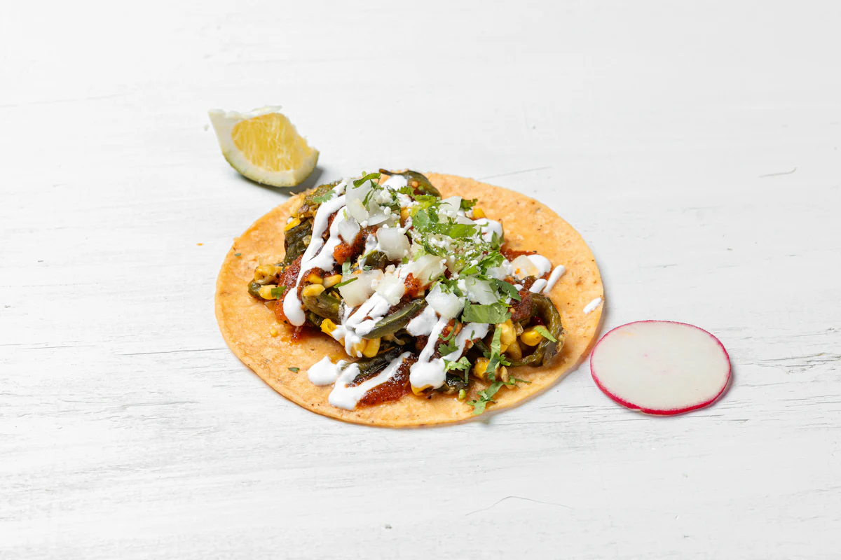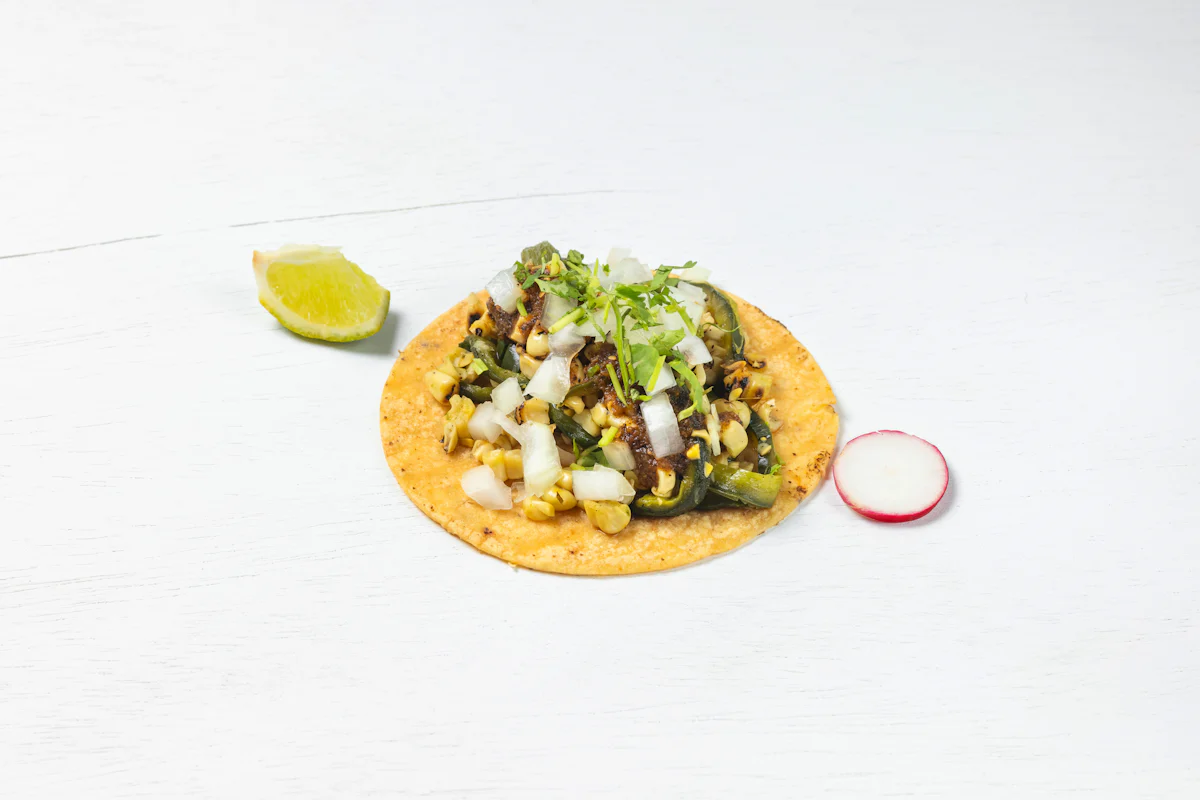 ROASTED CORN & POBLANO PEPPERS PAIRED WITH SMOKY ROJA SALSA (VEGETARIAN) *ALL TACOS SERVED WITH ONIONS, CILANTRO, SALSA, COTIJA CHEESE, CREMA AND CHOICE OF PROTEIN ON A CORN TORTILLA. GARNISHED WITH SLICES OF RADISH & LIME WEDGES. **ALLERGY ALERT: IF YOU OR SOMEONE IN YOUR PARTY HAS A FOOD ALLERGY, PLEASE PLACE ORDER OVER THE PHONE. **CROSS-CONTAMINATION ALERT: ALTHOUGH WE TRY OUR BEST, UNFORTUNATELY CROSS-CONTACT WITH OTHER INGREDIENTS MAY OCCUR. REGRETTABLY, WE CANNOT GUARANTEE THE