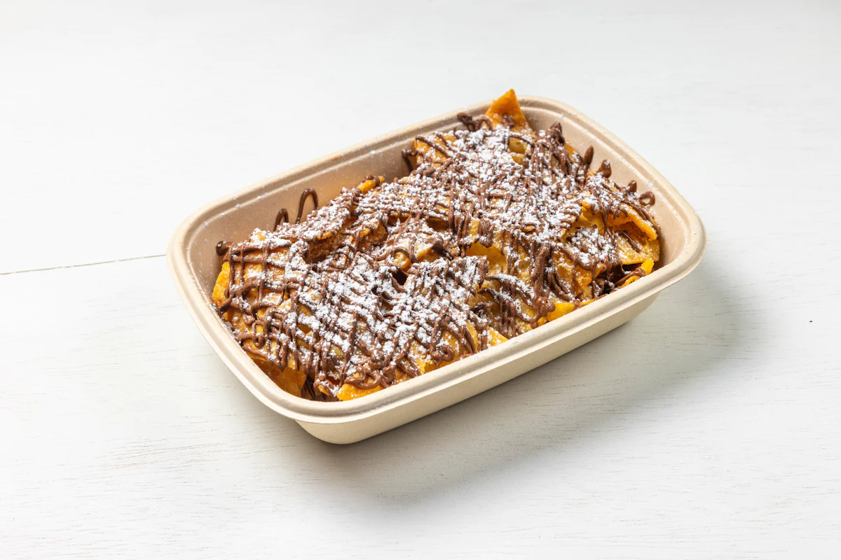 CRISPY FLOUR TORTILLAS TOSSED IN BROWN SUGAR, CINNAMON & DRIZZLED WITH NUTELLA.