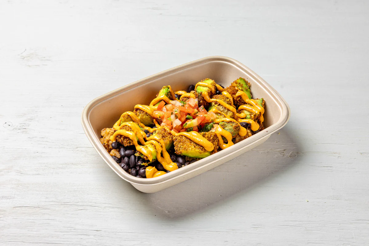 LIGHTLY BREADED SLICED AVOCADO PAIRED WITH VEGAN CHIPOTLE AIOLI *ALL BURRITO BOXES SERVED WITH CHOICE OF PROTEIN SERVED OVER RICE, BLACK BEANS, SALSA & PICO DE GALLO **ALLERGY ALERT: IF YOU OR SOMEONE IN YOUR PARTY HAS A FOOD ALLERGY, PLEASE PLACE ORDER OVER THE PHONE. **CROSS-CONTAMINATION ALERT: ALTHOUGH WE TRY OUR BEST, UNFORTUNATELY CROSS-CONTACT WITH OTHER INGREDIENTS MAY OCCUR. REGRETTABLY, WE CANNOT GUARANTEE THE COMPLETE ABSENSE OF ALLERGENS.