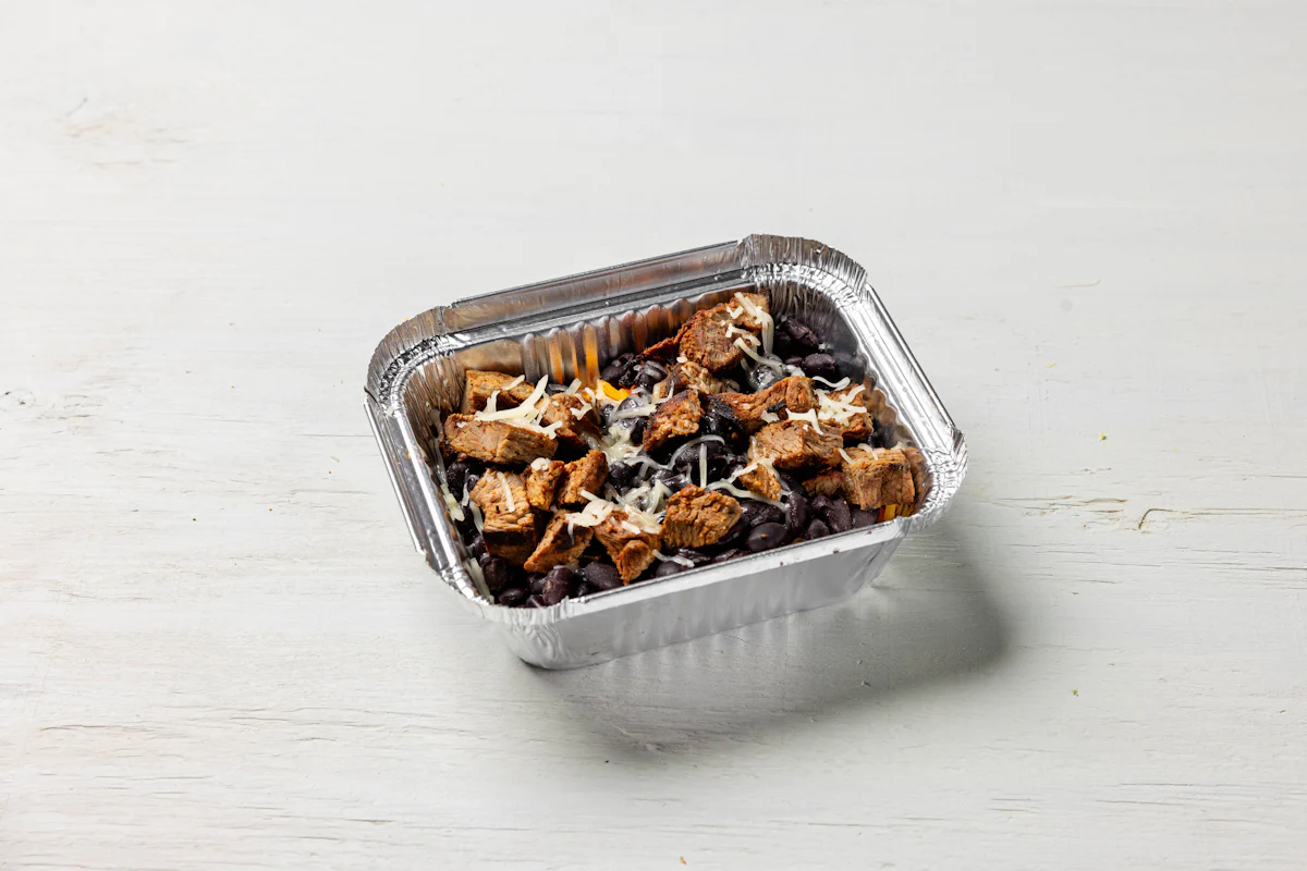 SPICED MARINATED GRILLED STEAK *BOX SERVED WITH SEASONED RICE, BLACK BEANS, JACK CHEESE & CHOICE OF PROTEIN. **ALLERGY ALERT: IF YOU OR SOMEONE IN YOUR PARTY HAS A FOOD ALLERGY, PLEASE PLACE ORDER OVER THE PHONE. **CROSS-CONTAMINATION ALERT: ALTHOUGH WE TRY OUR BEST, UNFORTUNATELY CROSS-CONTACT WITH OTHER INGREDIENTS MAY OCCUR. REGRETTABLY, WE CANNOT GUARANTEE THE COMPLETE ABSENSE OF ALLERGENS.