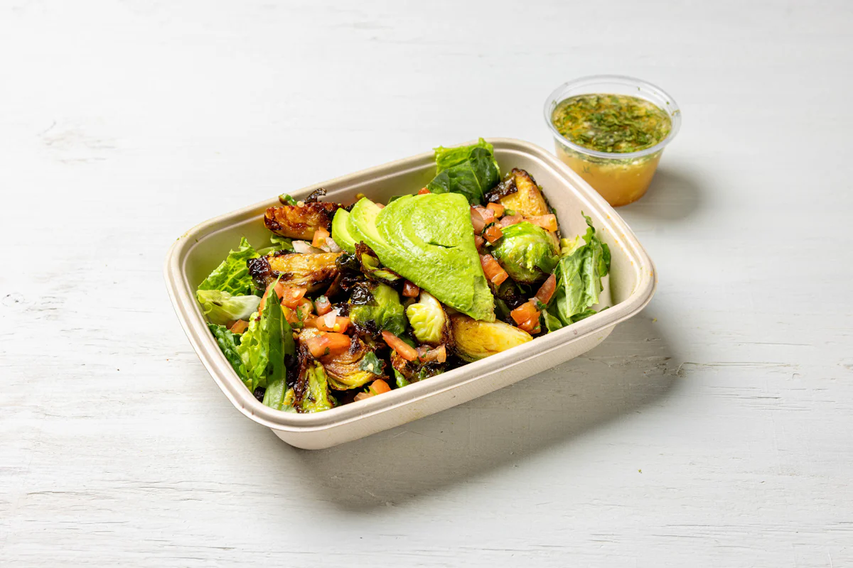 Side of our brussels sprouts charred & tossed in a chipotle agave sauce protein.