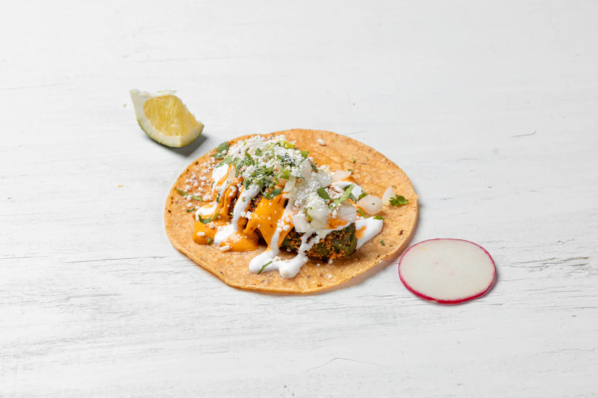 LIGHTLY BREADED SLICED AVOCADO PAIRED WITH VEGAN CHIPOTLE AIOLI *ALL TACOS SERVED WITH ONIONS, CILANTRO, SALSA, AND CHOICE OF PROTEIN ON A CORN TOTILLAS. GARNISHED WITH SLICES OF RADISH & LIME WEDGES. **ALLERGY ALERT: IF YOU OR SOMEONE IN YOUR PARTY HAS A FOOD ALLERGY, PLEASE PLACE ORDER OVER THE PHONE. **CROSS-CONTAMINATION ALERT: ALTHOUGH WE TRY OUR BEST, UNFORTUNATELY CROSS-CONTACT WITH OTHER INGREDIENTS MAY OCCUR. REGRETTABLY, WE CANNOT GUARANTEE THE COMPLETE ABSENSE OF ALLERGENS.